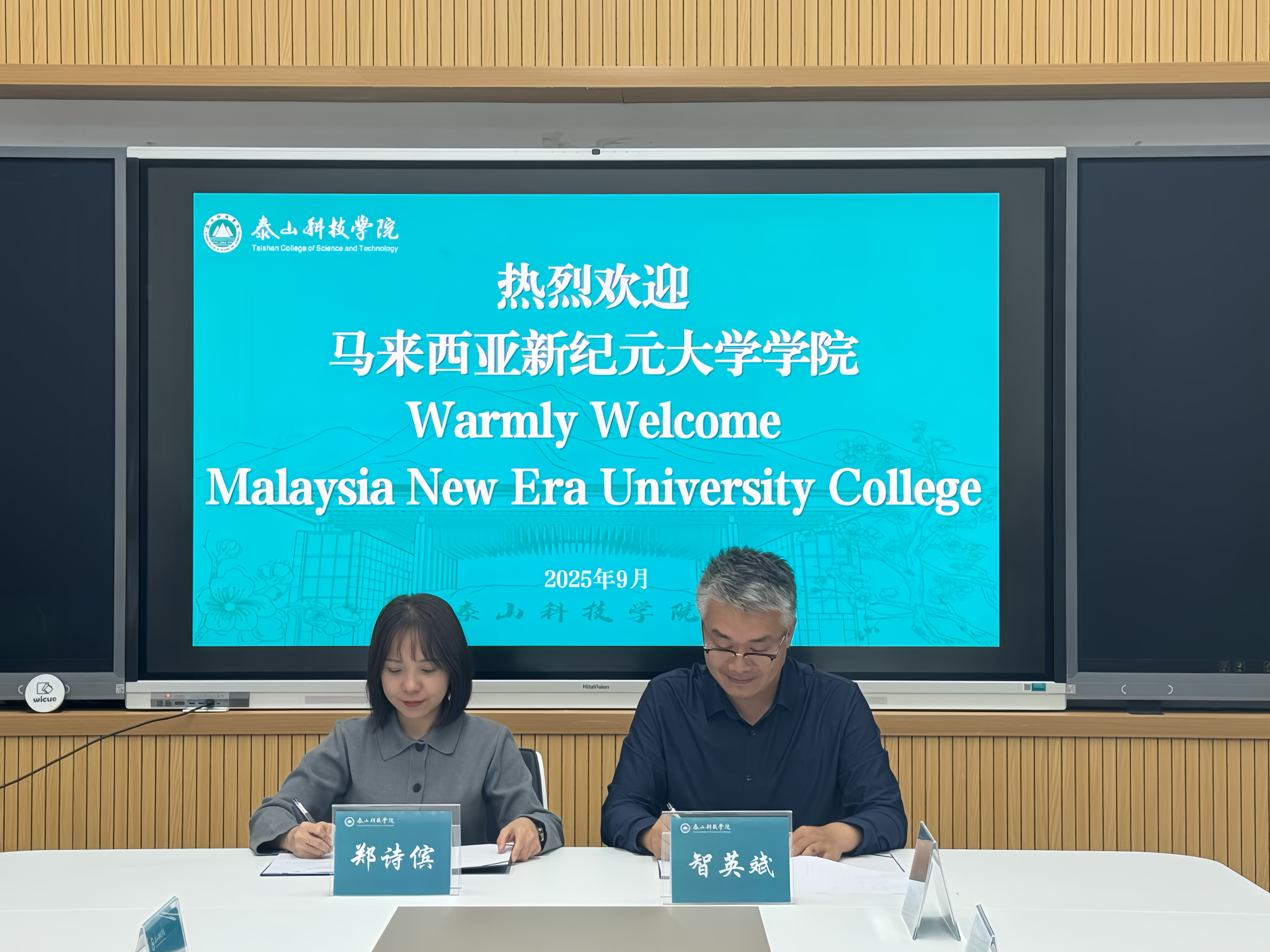 9月26日,马来西亚新纪元大学学院副校长郑诗傧一行访问泰山科技学院,学校副校长智英斌带领国际交流与合作处热情接待了来访一行。双方围绕教育国际化发展深入交流,就师生交流、学术共建、来华留学生等核心议题达成高度共识,并正式签署合作备忘录。此次访问标志着两校在国际化发展战略上的共识,为“一带一路”框架下的教育合作注入了新的活力。