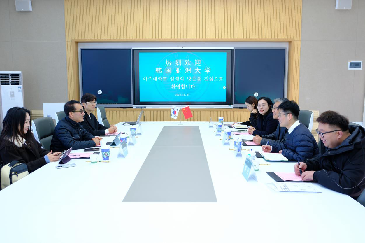 为深化中韩教育交流,共育具有国际视野的高素质人才,2025年11月27日,韩国亚洲大学国际协力副校长李硕远、国际处入学部部长金昌显、国际处入学部主任李宣慧一行到访泰山科技学院。泰山科技学院副校长智英斌及相关部门负责人热情接待了来访嘉宾,双方围绕意向合作项目展开深度洽谈,达成多项共识。